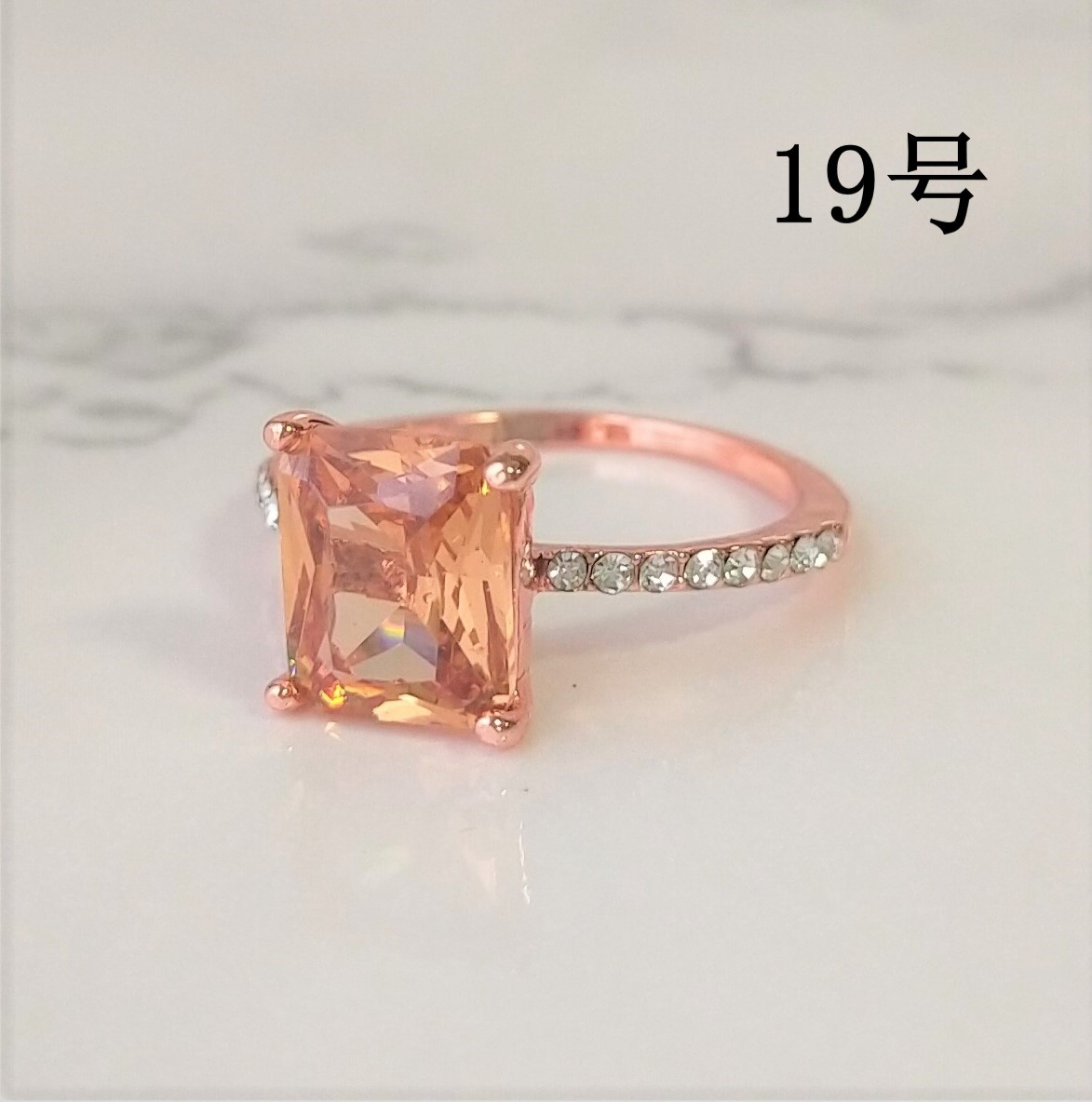 - スクエアリング ピンクゴールド 19号 ジルコニア 普段使い 指輪 メンズ スクエア リング パパラチアサファイアカラー