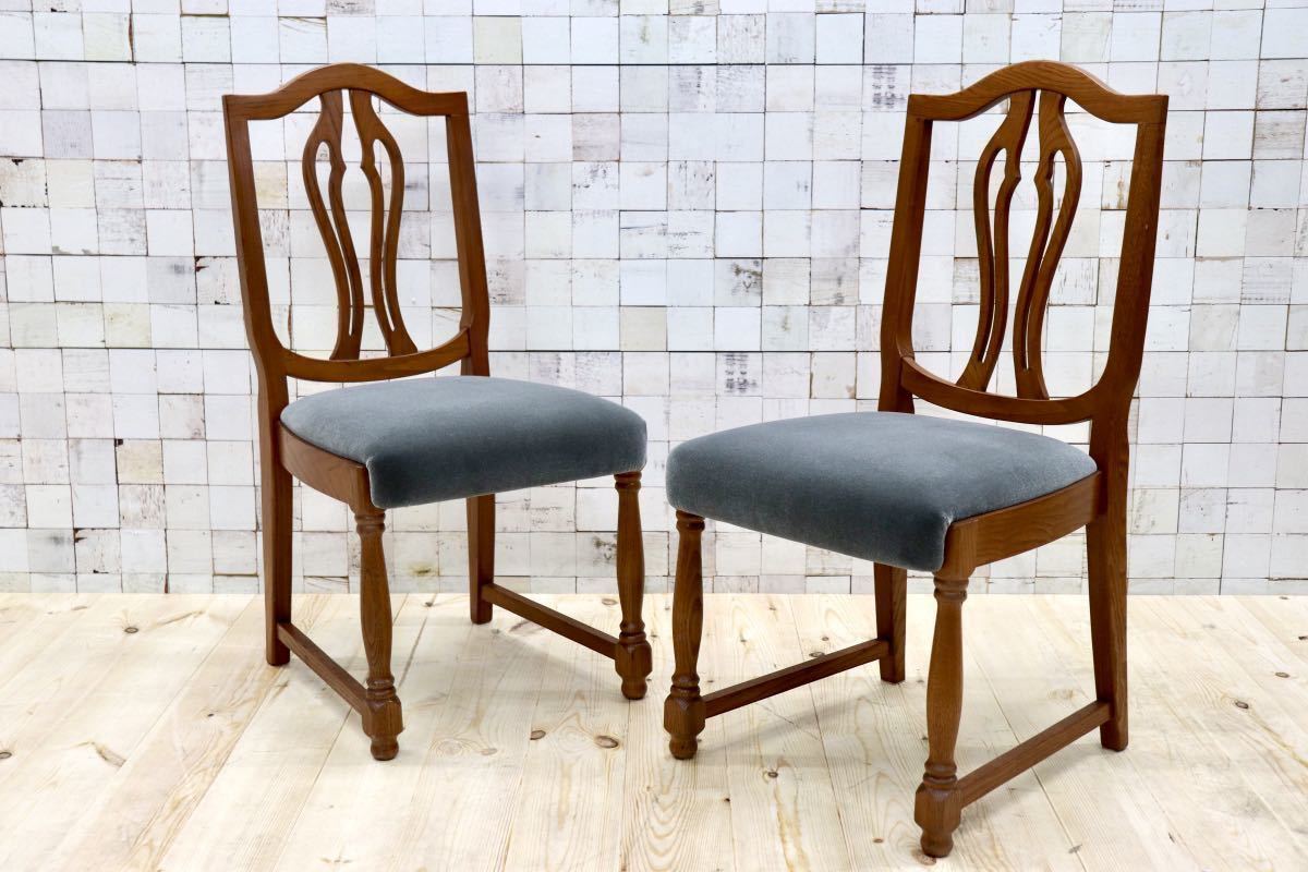 - GMGT117B○英国アンティーク ダイニングチェア 食卓椅子 ファブリック グレー 座面張替済 2脚セット クラシック 検)三越ブルージュ
