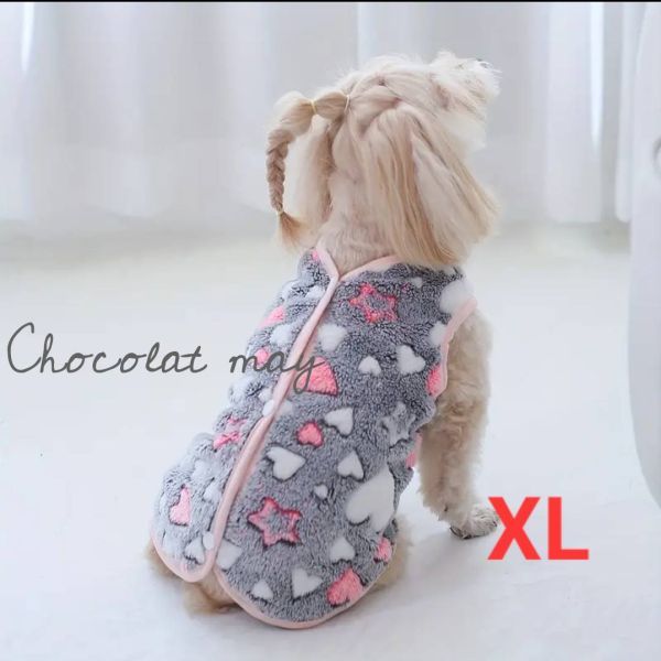 > ペット 犬 服 ドック フリース ハート XLサイズ 防寒着 秋冬春 グレー 袖なし 保温 ペット用品