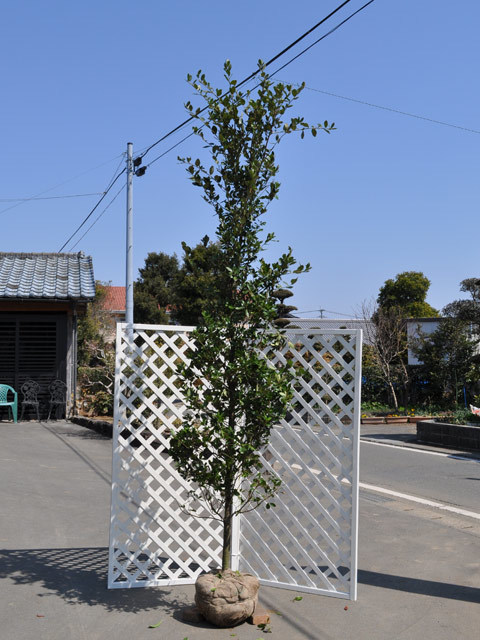 綺麗な緑が特徴で生垣によく使われる樹種です。カシ類ではもっとも強い刈り込みに耐えます。潮風や大気汚染にも強い木です。秋になるとかわいい帽子をかぶったドングリを10月ごろに実らせます。一年中緑色の綺麗な葉が付いています。風に強く防火性も高いために、古来から家を守る為に生垣や防風林に使われたりします。そのまま伸ばすと不整形になります。