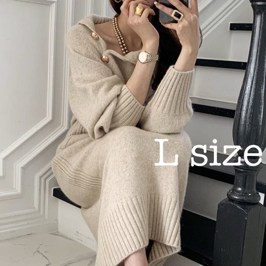 - ワンピース ニット ロングワンピース ニットワンピース タイト セーター オフショルダー マキシ丈 ベージュ L