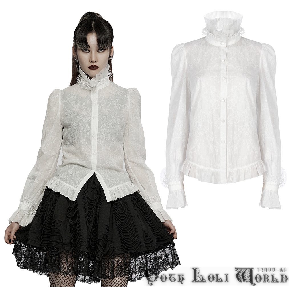 > SALE WY-1391WH-M ゴシック スタンドレースカラーテクスチャ ブラウス 白色 ゴスロリワールド ゴシック パンク ロリィタ ビジュアル系 V系