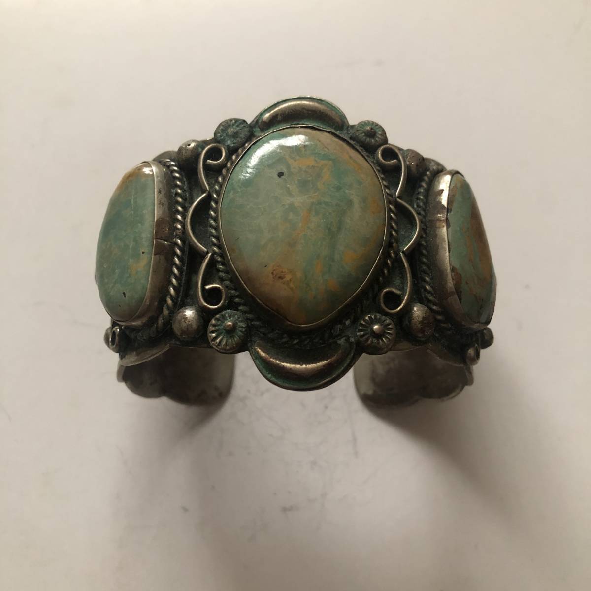 > 希少 ナバホ Albert Cleveland ターコイズ付きデザイン シルバー バングル ナバホ族 インディアン ジュエリー ブレスレット NAVAJO