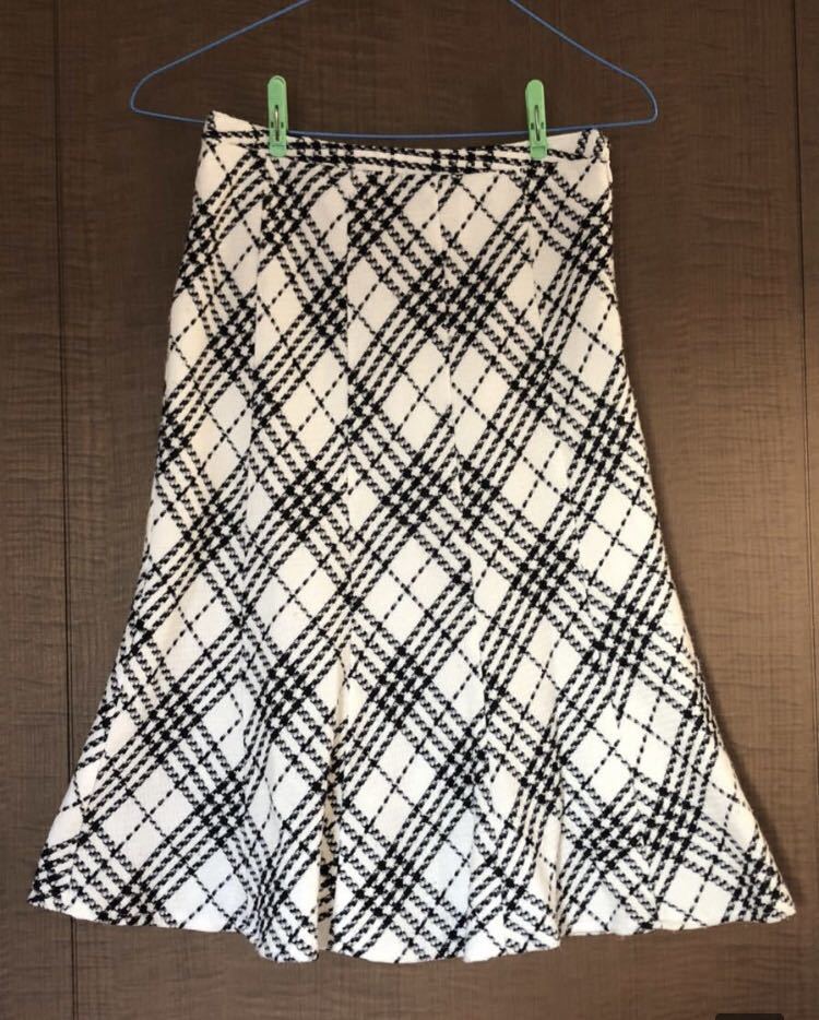 - 訳有 ひざ丈スカート 白/黒チェック柄 格子柄 Mサイズ(実寸W64)