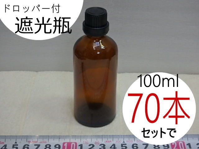 > 140sk220628 未使用 大量 遮光瓶 100ml まとめて70本セット ドロッパー付 茶色 ガラス瓶 ロック付き 容器(北海道・沖縄・離島は発送不可)