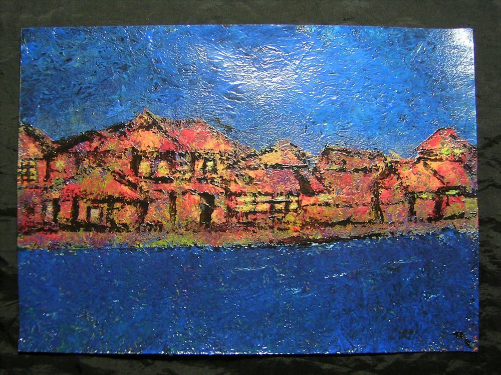> 風景画、景色、街並み、絵、絵画、アート、Art、芸術、藝術、肉筆、原画、インテリア、特殊加工、真作、水雲彩鶴 ※額縁に入れて発送します