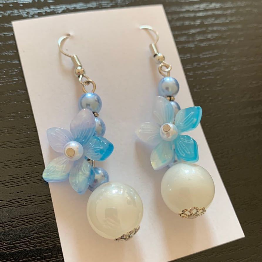 - 淡色 ブルーグラデーション マーメイド フラワー フック ピアス シルバー
