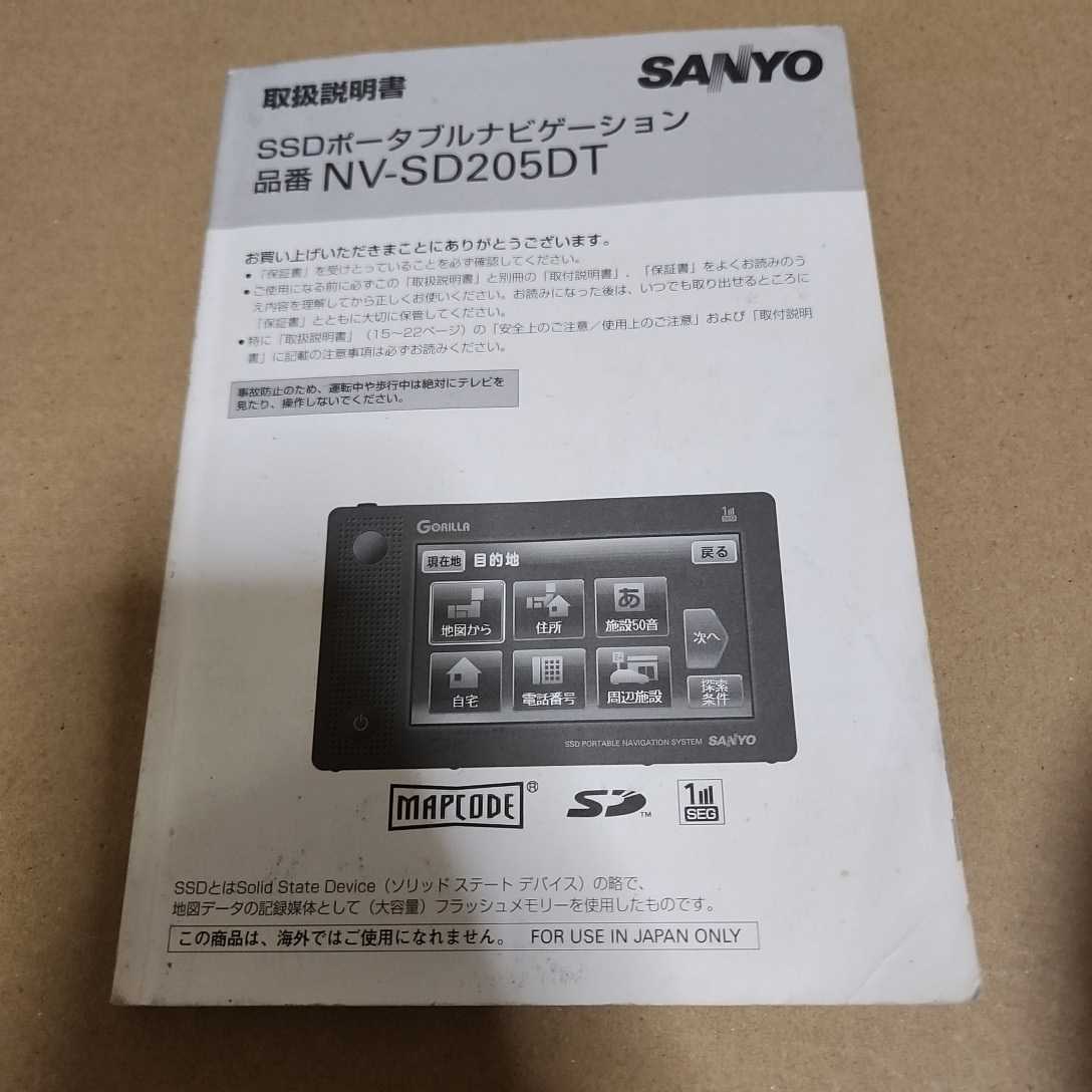 - サンヨー SANYO ゴリラ NV-SD205DT SSDポータブルナビ用の取説 取扱説明書 取扱書 マニュアル