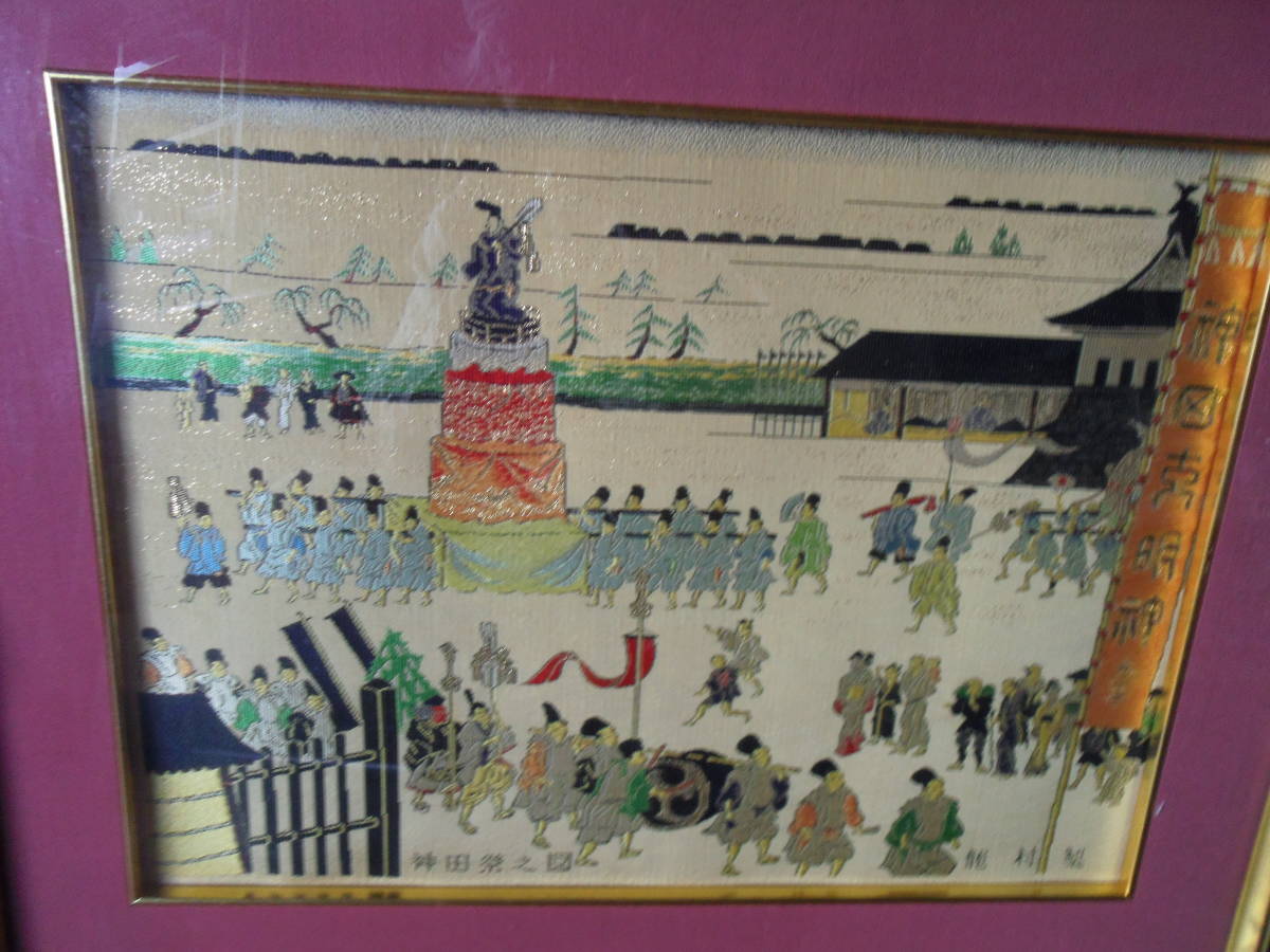 - 龍村織物製、神田祭之図 額装、時間経過あり