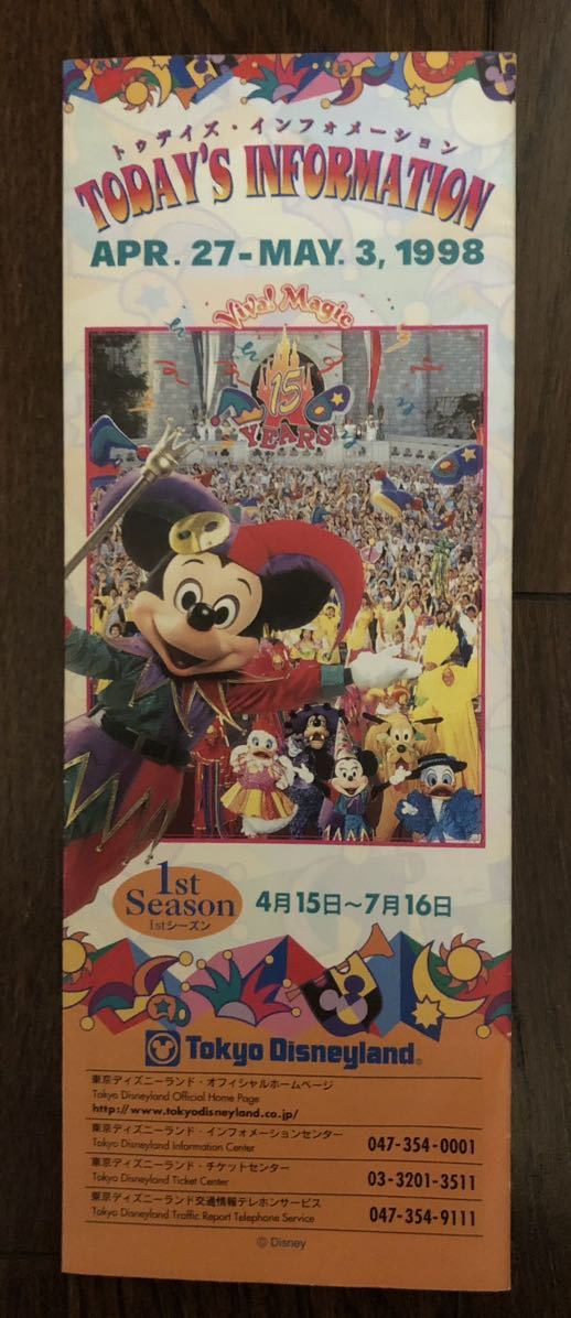 > レア 1998年当時物 TDL 東京ディズニーランド トゥデイズ・インフォメーション 開園15周年記念 コレクション ヴィンテージ アンティーク