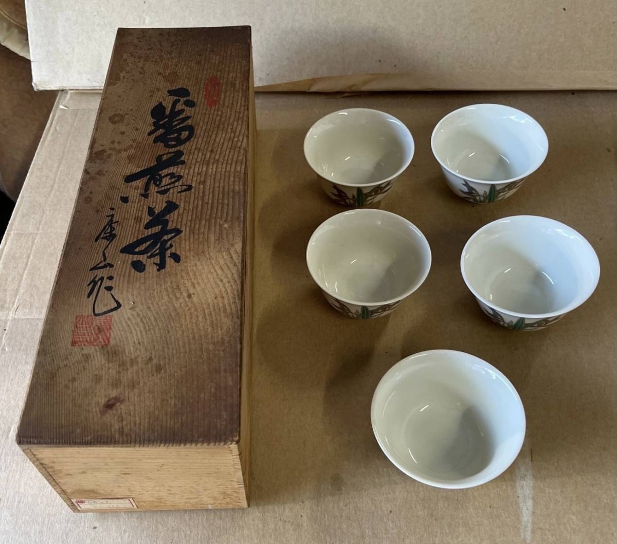 > 【No.503】茶道具 茶道 美濃焼 庫山窯 番煎茶碗 5客 共箱付き 陶磁器 茶器 未使用品 長期保管 現状品