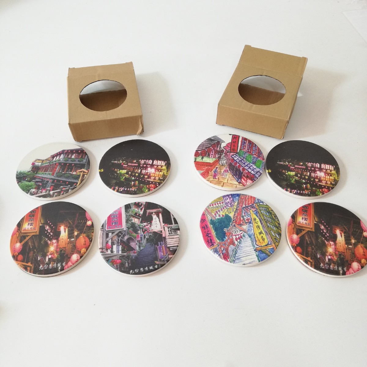 - 台湾 九分 九分 特色茶楼 吸収石 珪藻土 コースター 8枚セット 未使用品 [台灣 観光土産 中華工芸]