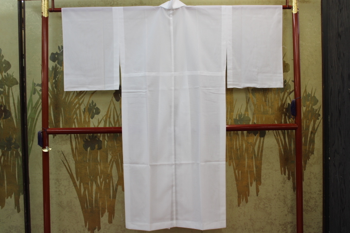 - きもの今昔6439 長襦袢 ポリエステル100%駒絽白長襦袢 バチ衿単衣仕立 きもの専門店「やまと」誂え品 身丈128cm