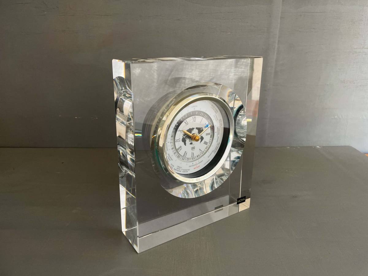 - [9035]稼働品 HOYA 置き時計 保谷硝子 時計 モダン クロック ヴィンテージ ビンテージ 保谷クリスタル 世界時計 置時計