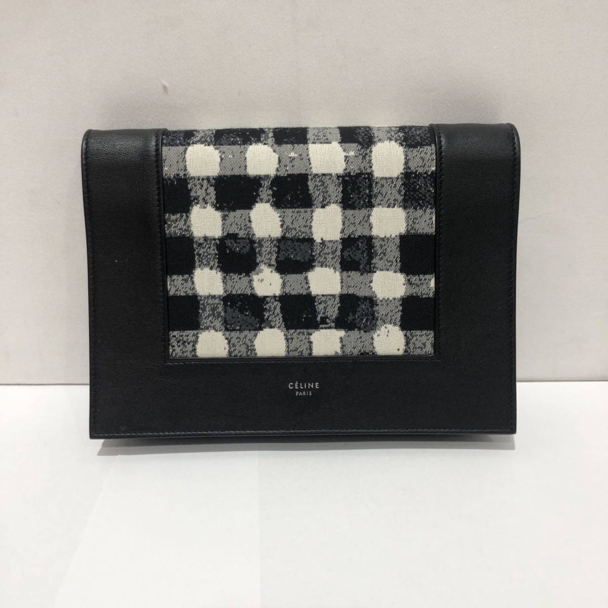 > 【CELINE】セリーヌ フィービー チェーンショルダーバッグ 2way クラッチバッグ レザー ブラック チェック柄 シルバー ts202412