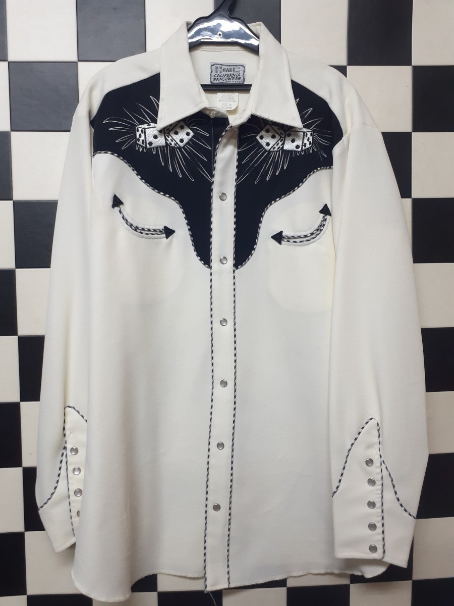 - アメリカン古着ロカビリーロックンロールスタイルビンテージH BAR Cサイコロダイス刺繍ウエスタンシャツ