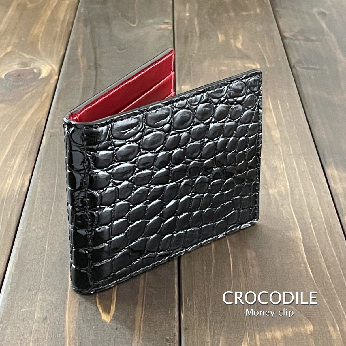 - CROCODILE クロコダイル × イタリアンレザー IBIZA マネークリップ ブラック レッド イビザ 人気 財布 コンパクト スリム ミニ