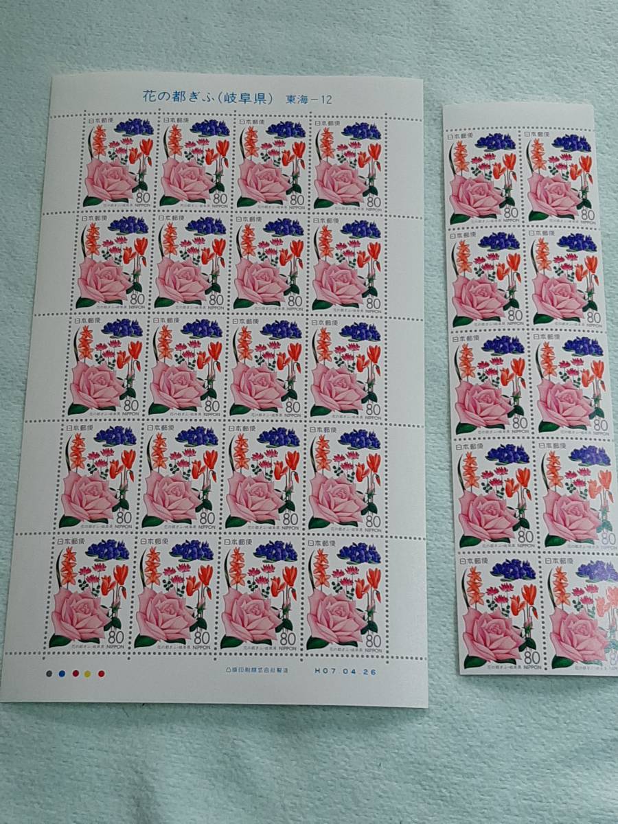 ふるさと切手 花の都ぎふ(岐阜県)東海-12 H7 切手シート1枚と10枚シート