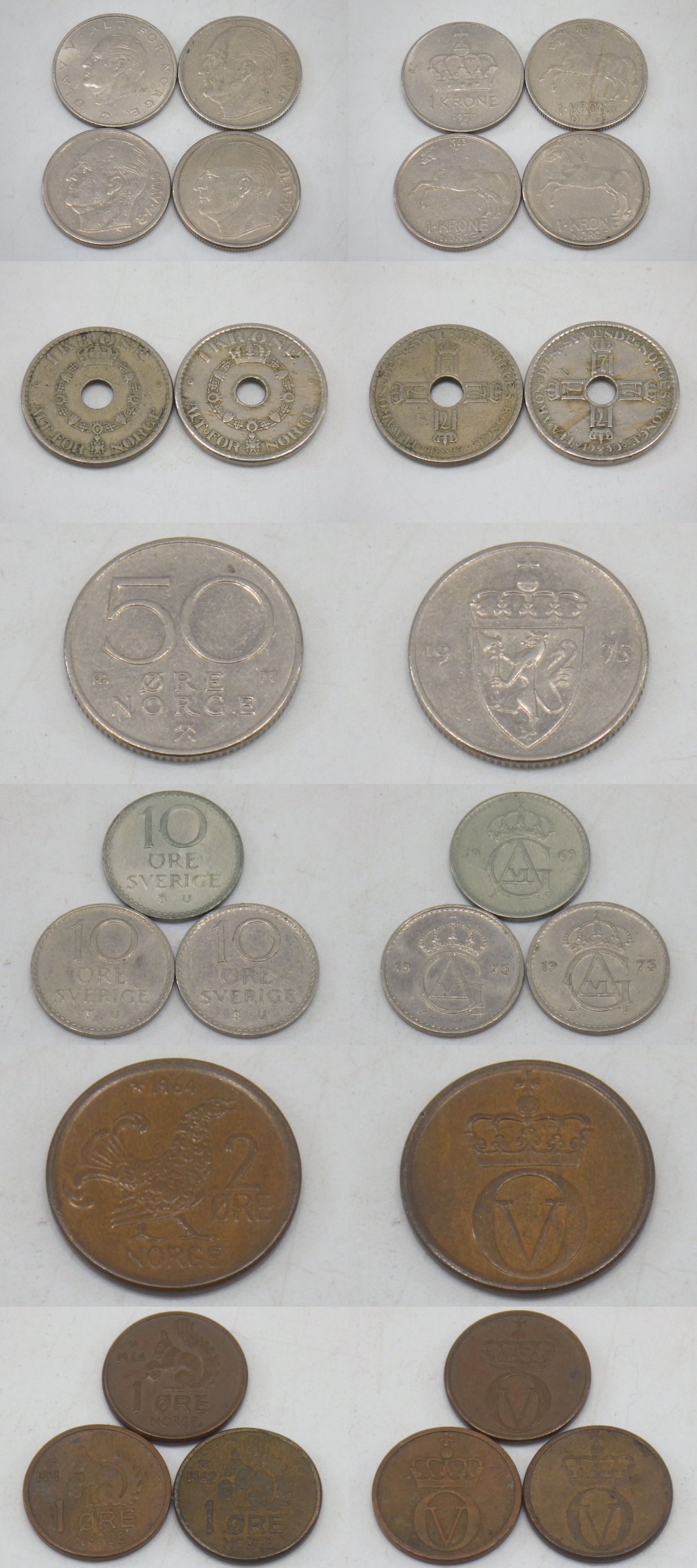 - h5B006Z- 硬貨 旧硬貨 デンマーク ノルウェー クローネ オーレ スウェーデン 1クローナ銀貨など 合計40枚