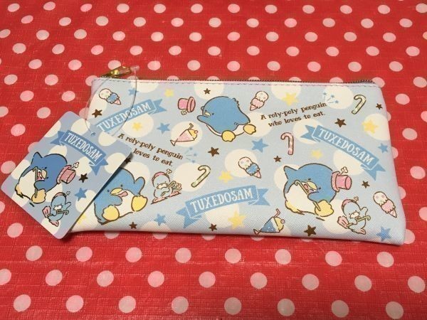 - ゆうパケ★ タキシードサム サンリオ 総柄 ポーチ ミニポーチ アイス ブルー 水色 ペンポーチ