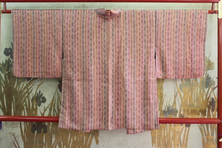 - きもの今昔6479 お羽織コレクション 正絹色分け縞柄小紋様おしゃれ羽織 羽織紐手組紐付き 羽織丈77cm