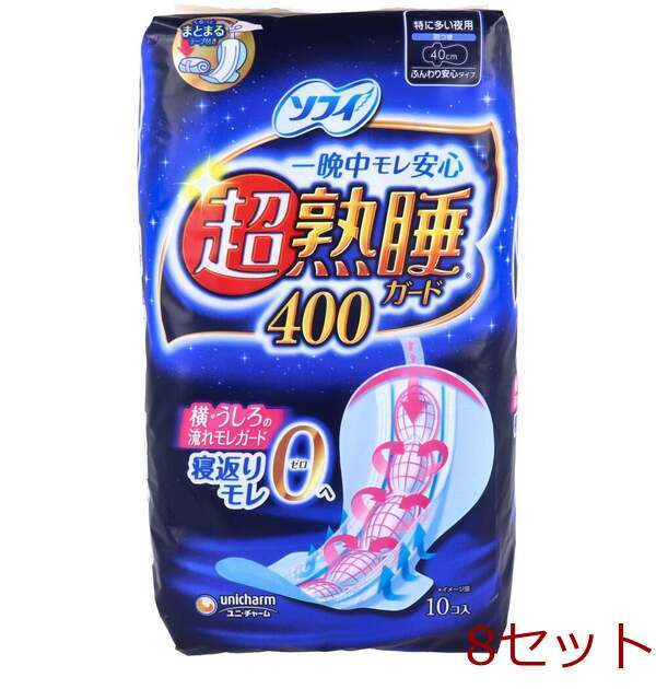 - ソフィ 超熟睡ガード400 特に多い夜用 羽つき 40cm 10個入 8セット