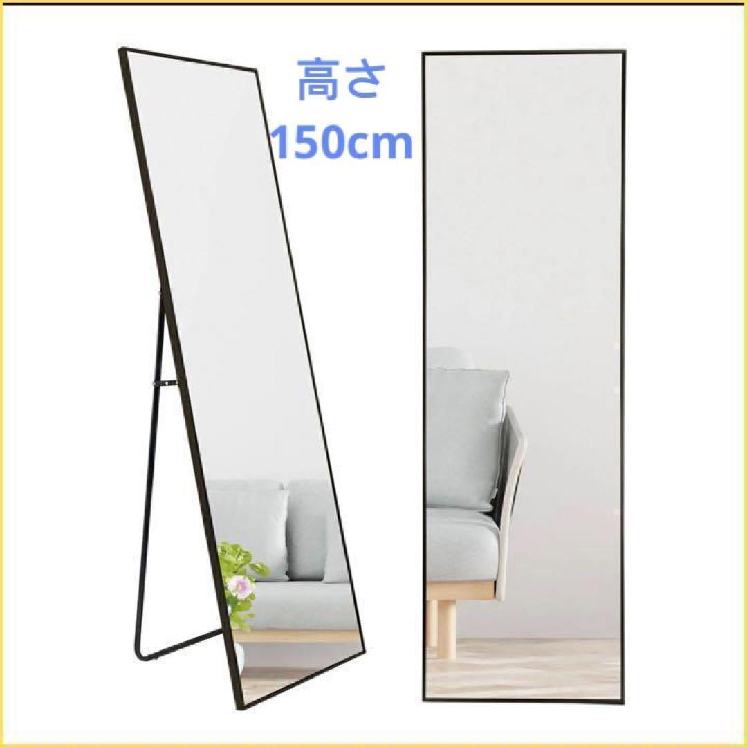- 格安1423 直角鏡150cm黒 おしゃれ!軽い! スタンドミラー 姿見鏡 鏡150cmx40cm ブラック