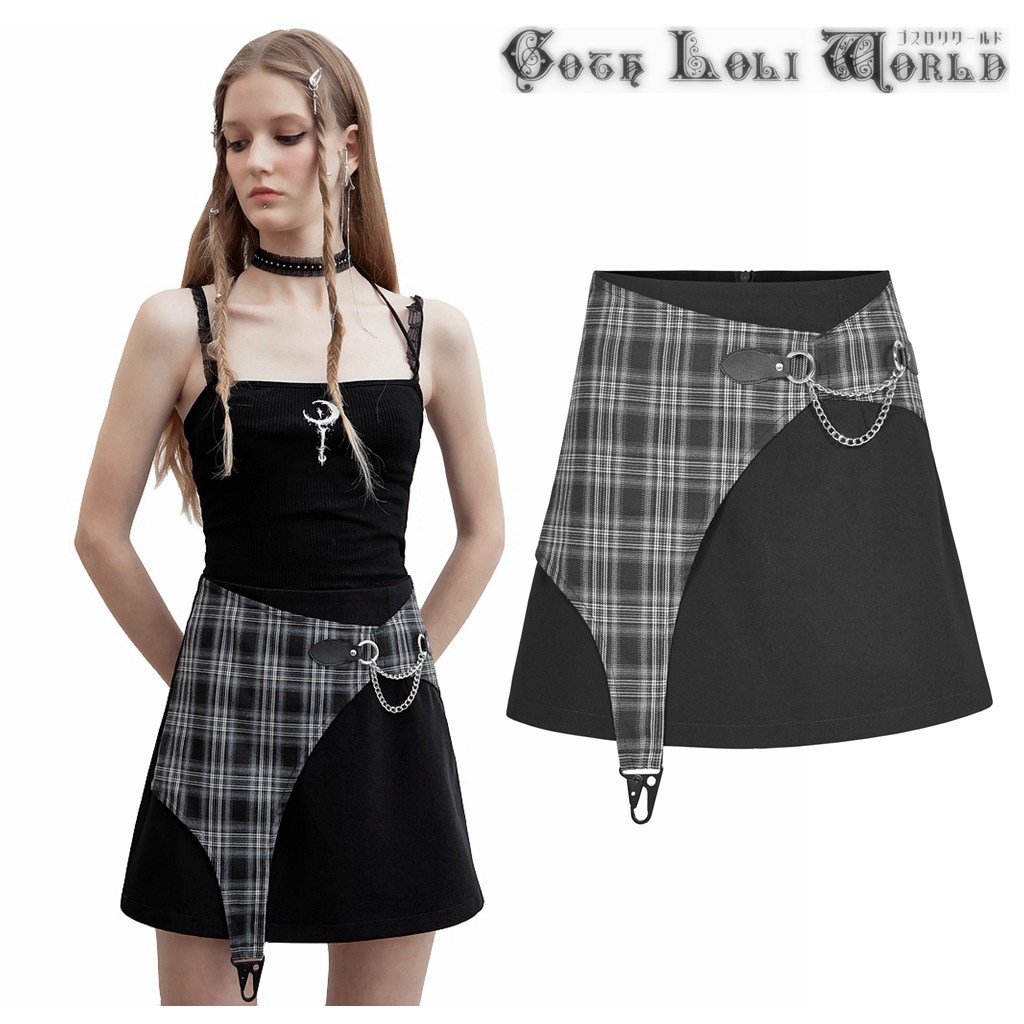 - sale OPQ-962-L アシンメトリカルチェックAラインミニスカート ゴスロリワールド ゴシック パンク ロック ロリィタ ビジュアル系 V系