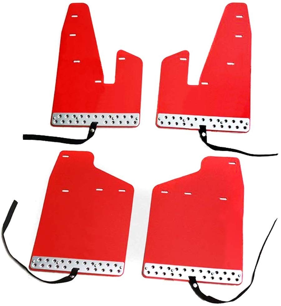 マッドフラップ プロテクター 1台分 【素材】本体:EVA製、フラップエンド:アルミ製 【カラー】レッド 【セット内容】マッドフラップガード×4P、ハンガーベルト、取付ブラケット、取付金具一式