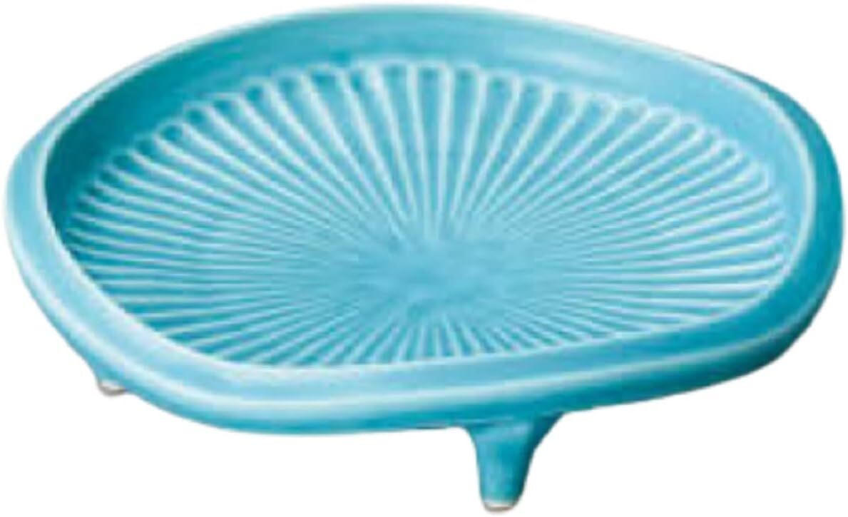 - KU! 美濃焼 ☆トルコブルー四ッ足菊彫向付☆ 48-8-527 新品 プレート 盛皿 盛鉢 小付 皿
