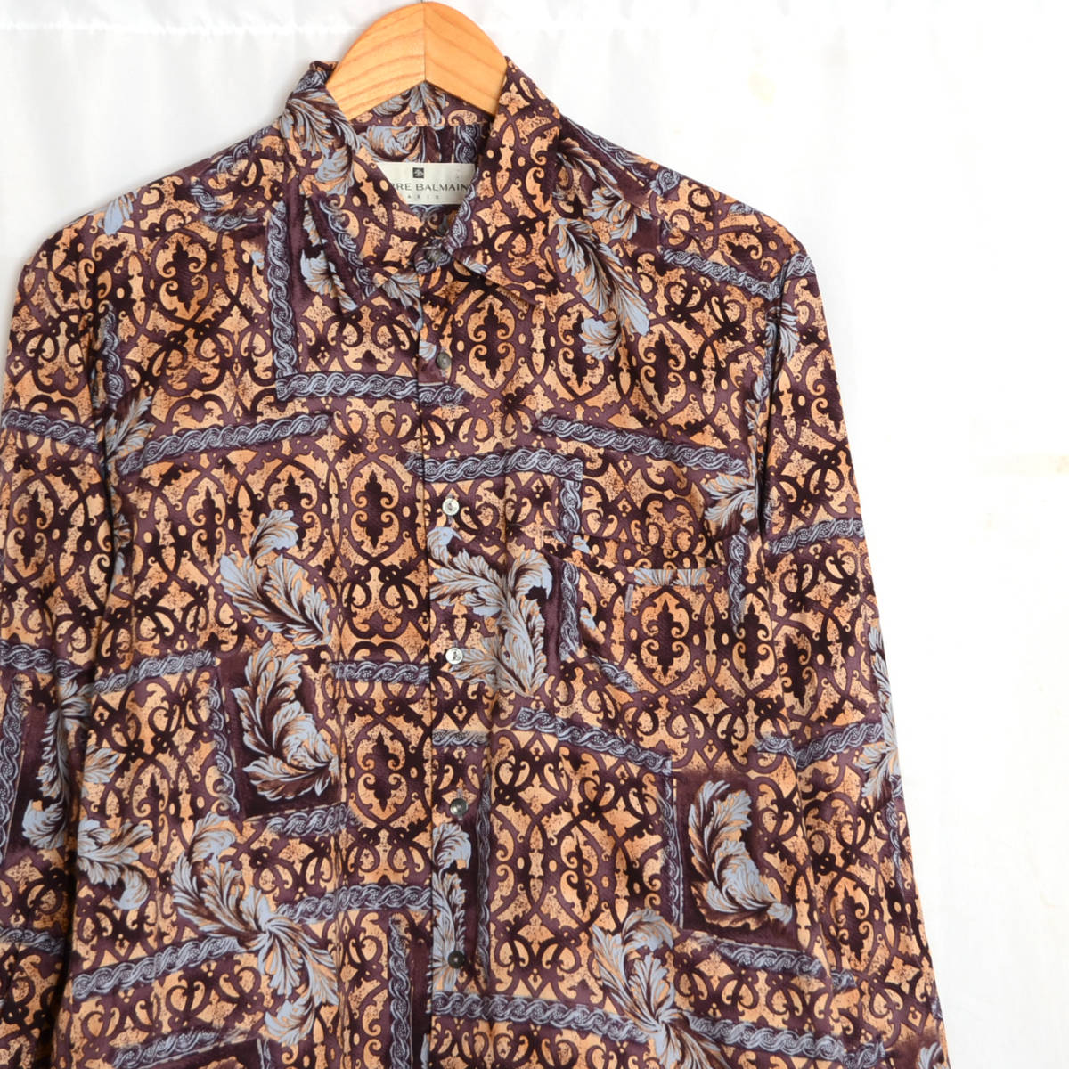 - AS249 ピエールバルマン 長袖シャツ L 肩46 ペイズリー メール便発送可 xq