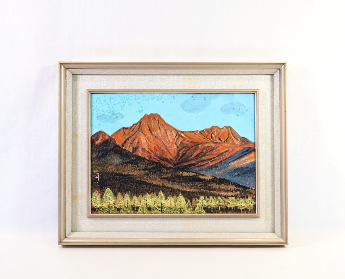 - 真作 妹背平三 日本画「晨朝」画寸 8号 京都府出身 日展会友、県展審査員 堂本印象に師事 確かな力強い筆致で描く磐梯山の朝景 8595