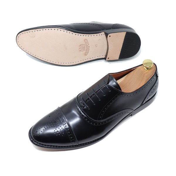 > 26.5cm メンズ 本革 ストレートチップ セミブローグ レザーソール 革底 ビジネスシューズ ハンドメイド マッケイ製法 靴 ブラック 1004