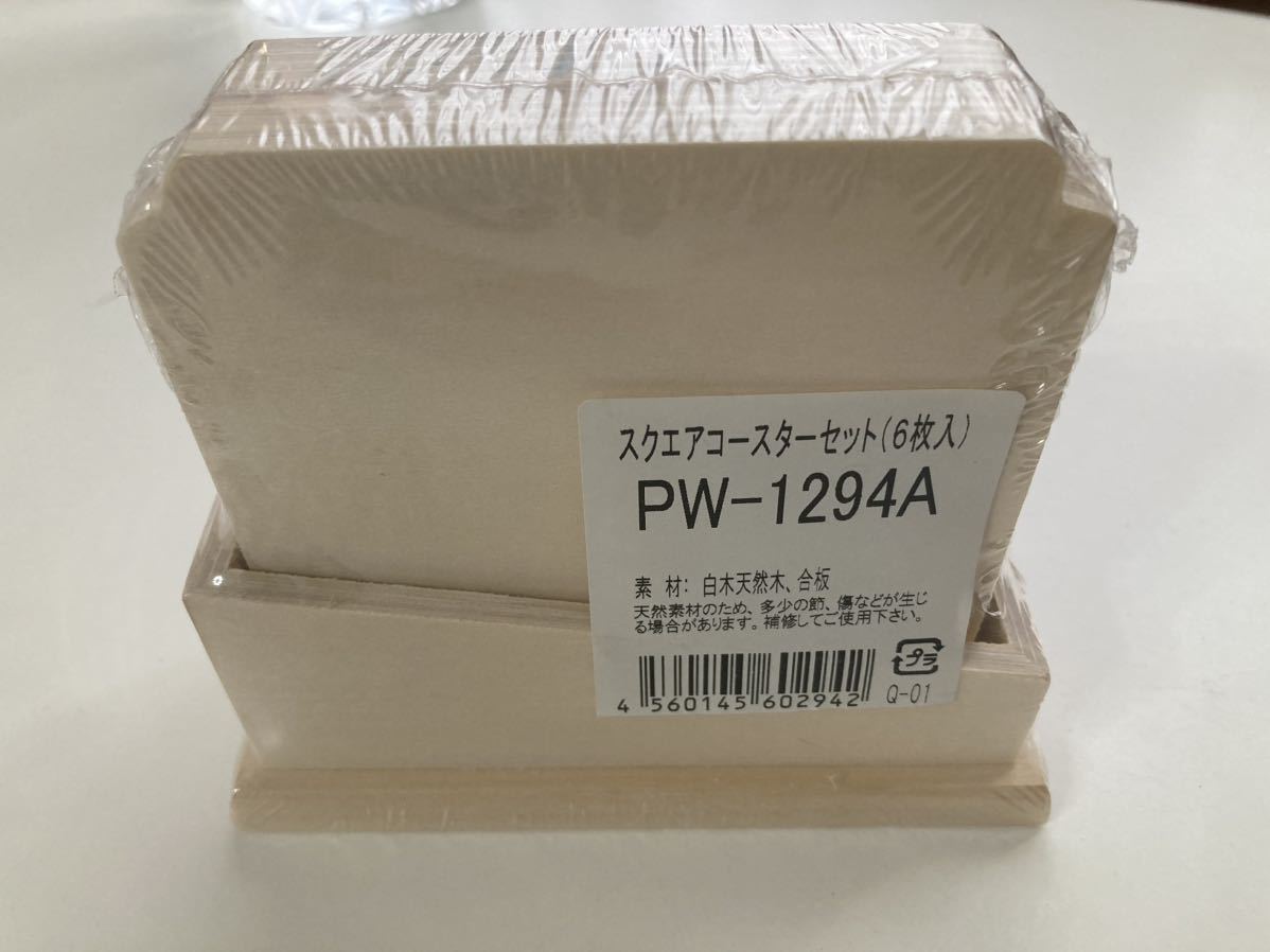 - 新品スクエアコースターセット6枚 ケース付き白木天然木 ハンドメイドに