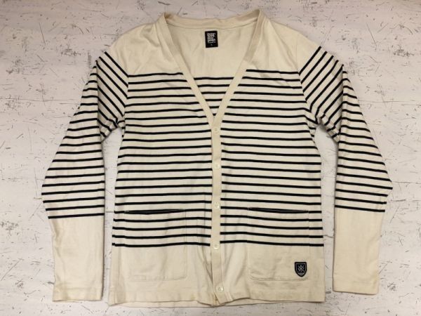 - Design Tshirts Store graniph グラニフ パネルボーダー Vネック カットソー カーディガン メンズ L 生成り/紺