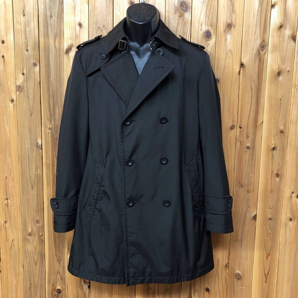 > BURBERRY /BLACK LABEL /バーバリー ブラックレーベル メンズM 黒 トレンチコート アウター ダブル ノヴァチェック 日本製 紳士 男性 古着