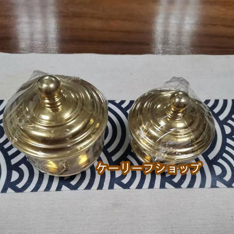 - 【ケーリーフショップ】塗香器 洒水器(舎水器) 中型 直径7.5cmと直径7cmの2種類 密教で使われる仏具 密教法具 前具 寺院仏具 (2体セット)