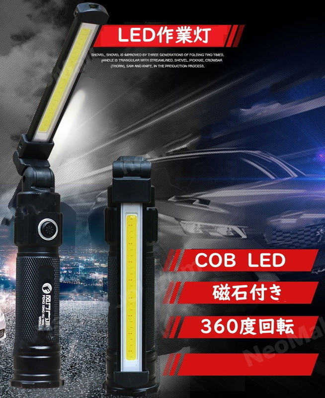 - COB LED ワークライト 作業灯 磁石 マグネット 超強力 ハンディライト 照明 作業用ライト 停電灯 防災 高輝度 懐中電灯 ZCL198