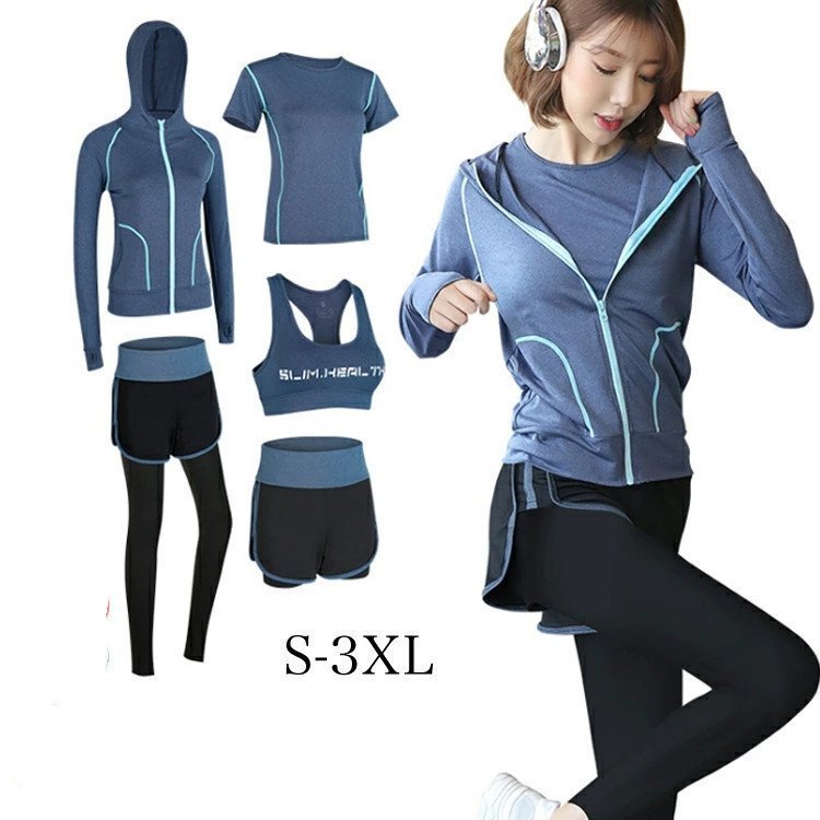 > スポーツウェア レディース 上下 5点 セット トレーニング フィットネスウェア tシャツ パンツ 半袖 長袖 トップス ヨガgyma1769