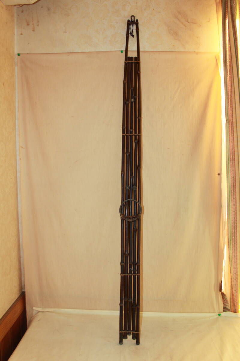 - ◆逸品 古斑竹 短冊掛け 五本組垂撥 スイバチスイハツ 長さ135cm 竹紐編 壁掛 茶道具