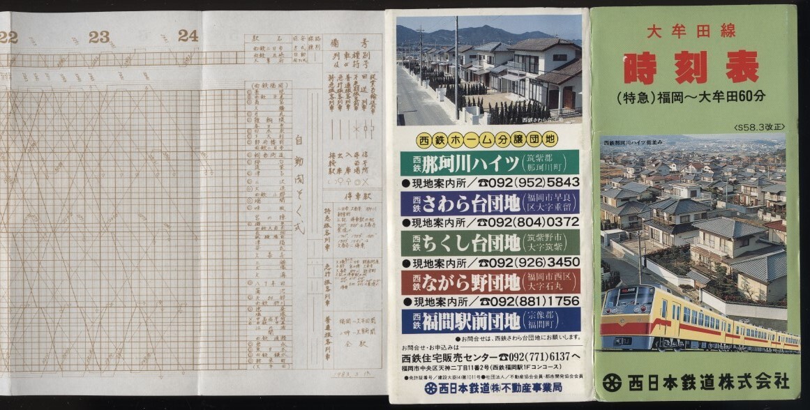- 西鉄大牟田線時刻表 西日本鉄道株式会社 昭和58年3月改正 1枚 平日用/休日用 検:西鉄大牟田線ダイヤグラム 列車運行図表 西鉄福岡-大牟田