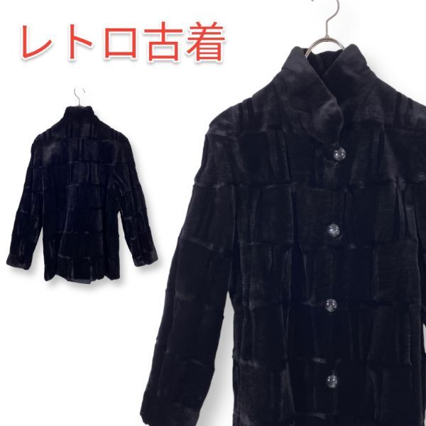 - レトロ古着 フェイクファーコート 黒 ブラック