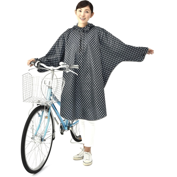 - Kawasumi カワスミ 雨の日のおでかけポンチョ KW-722BD ブラック/ブルードット レインポンチョ/ユニセックス/収納袋付