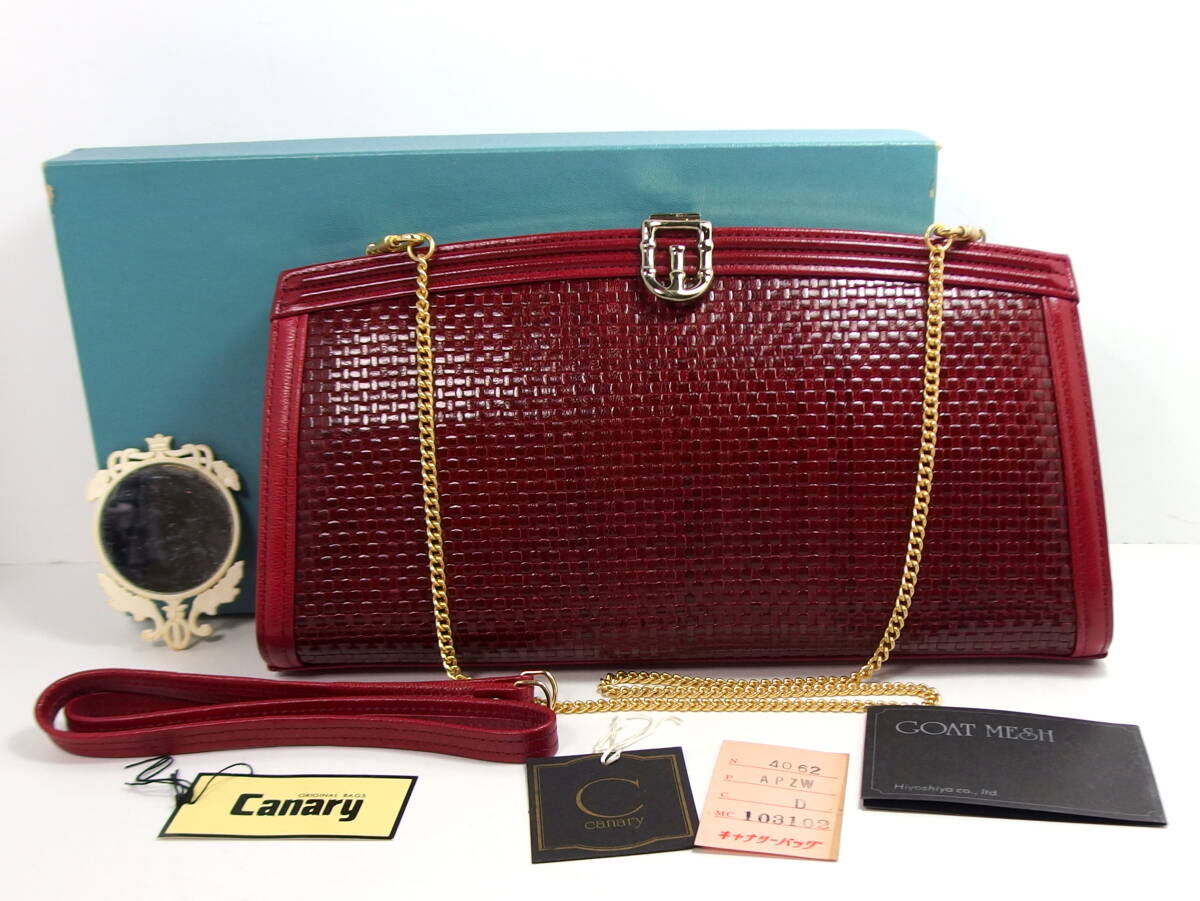 > ♪☆【内布劣化あり】日吉屋 canary ゴート メッシュ 3way チェーン ショルダー クラッチ ボルドー 山羊革 ななめ掛け 鞄 ハンドル付き