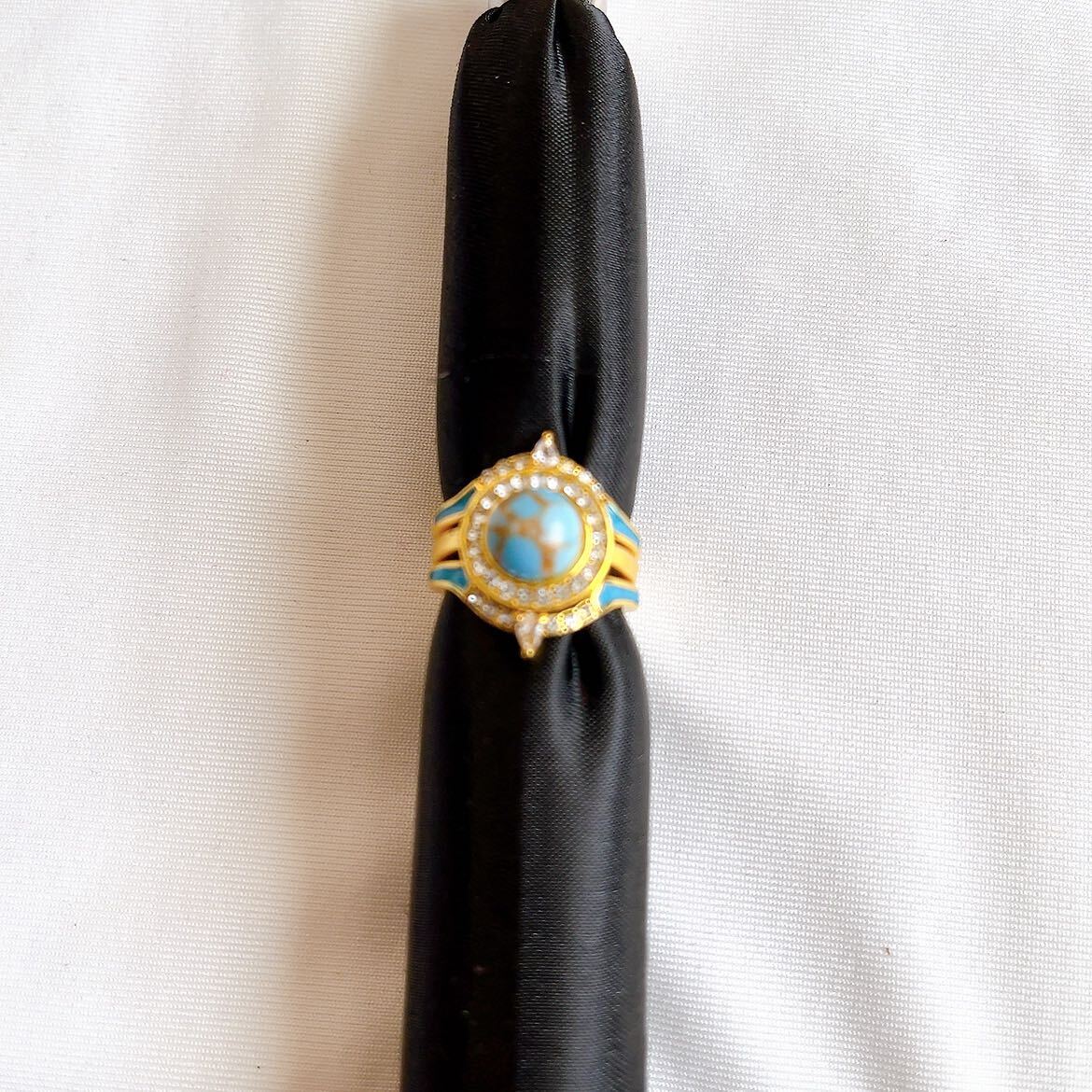 - 新品★ゴールド★ターコイズ風★ゴージャスリング★指輪★10号★3本セットリング 指輪
