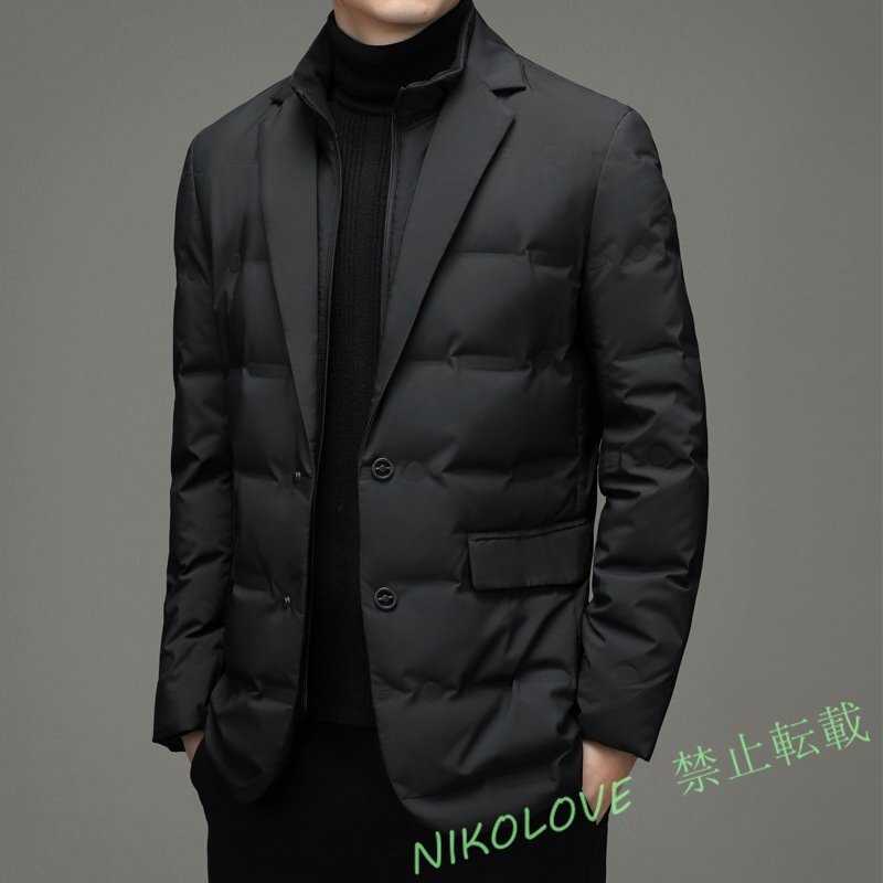 - メンズ ダウンジャケット ダウンコート ビジネス ブレザー ブルゾン ダウンコンビダウンテーラードジャケットアウター ブラック AA906
