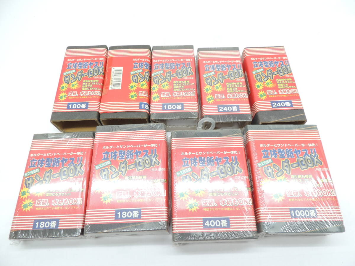 - 訳あり日本製サンダーBOX立体型紙ヤスリ色々混ぜて合計 9個セット #180#240#400#1000 角 空砥ぎ水研ぎ MT-012
