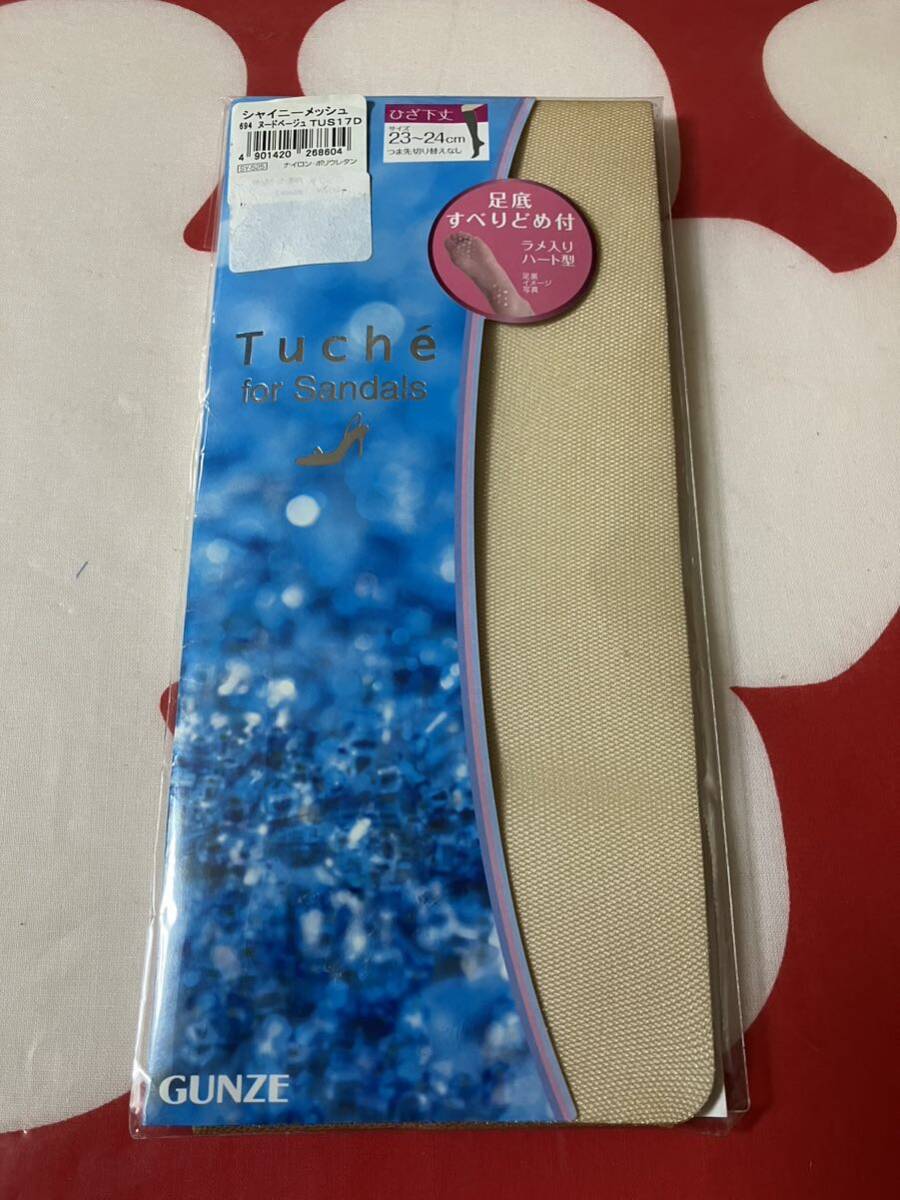 > GUNZE Tuche for sandals シャイニーメッシュ ヌードベージュ ひざ下丈 グンゼ ショートストッキング short stocking美脚