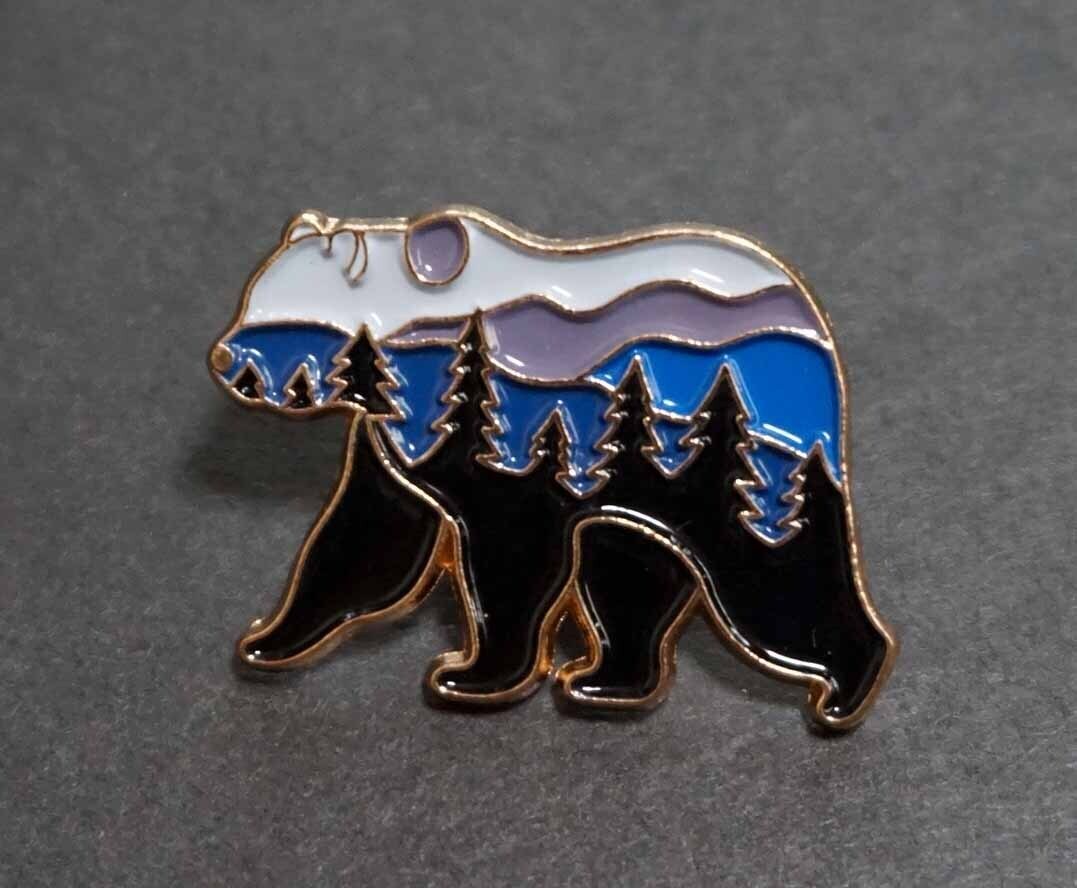 - 《冬景色US自然熊》新品『クマ 森』 ■自然 キャンプ アウトドア■金属ピンバッジ バッチ■おしゃれ ファッション ラッキーアイテム 開運■