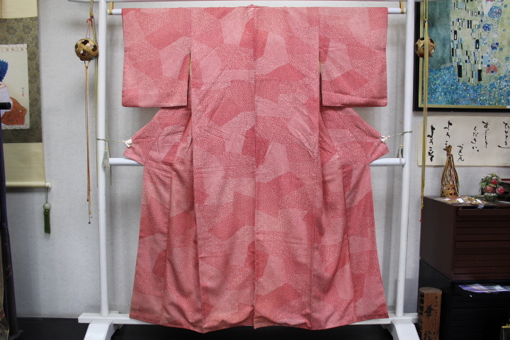 > きもの今昔6667 小紋のきもの 広衿袷手縫い仕立て 鮫小紋割り付けに小紋様が色々 鮫・梅・ドット等々 身丈155cm